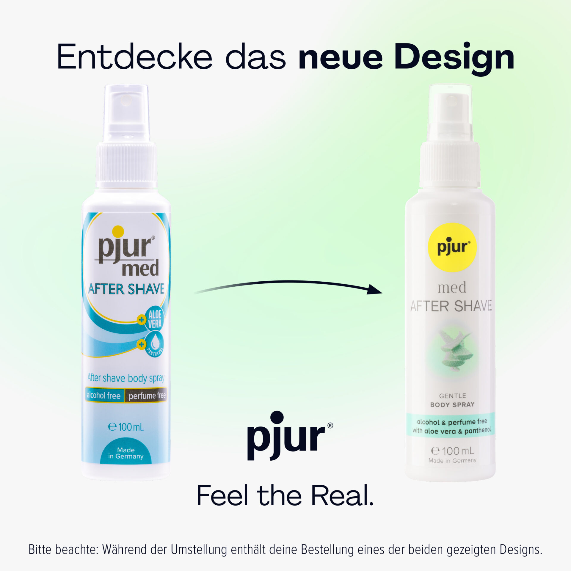 Wenn wir unseren Achsel- und Intimbereich rasieren, wird unsere Haut mit jedem Mal empfindlicher und ist strapaziert. Mit unserem pjur med AFTER SHAVE spray ist damit Schluss! Das Spray einfach nach der Rasur auf die rasierten Stellen auftragen. Im Gegensatz zu herkömmlichen Produkten enthält es weder Alkohol noch Parfüm. Deswegen brennt es nicht auf der Haut, sondern pflegt die beanspruchten Hautpartien. Es enthält außerdem Provitamin B5 und Aloe Vera zur Pflege nach der (Intim-)Rasur.